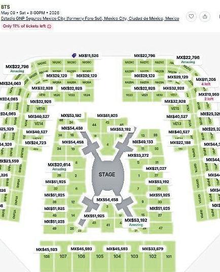 Los mapas que circulaban en la red social X, mostraban lugares disponibles en las diferentes zonas del Estadio GNP, con un rango de precios que iba de los13 mil pesos en el área de gradas, hasta los 54 mil en la zona VIP.