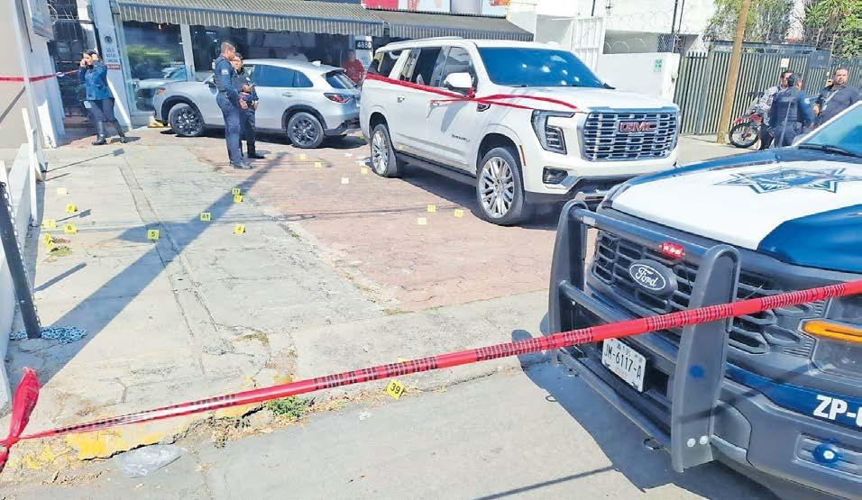camioneta con impactos de bala y al menos 20 indicios balísticos. En el sitio fueron atendidos el empresario y dos de sus escoltas. El empresario fue trasladado a un hospital privado. Posteriormente, las autorida-