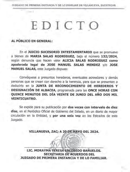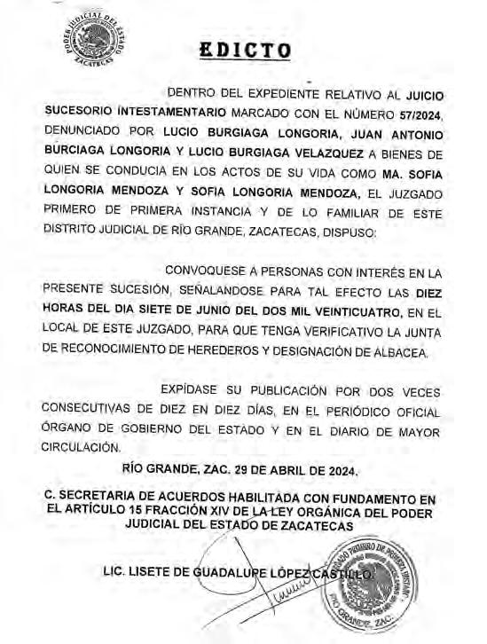 Además, se tendrá atención el 2 de junio en sus oficinas regionales ubicadas en Fresnillo, Jalpa, Jerez de García Salinas, Loreto, Sombrerete y Río Grande, o bien, en su celular de 24 horas 492 124 7730. STAFF