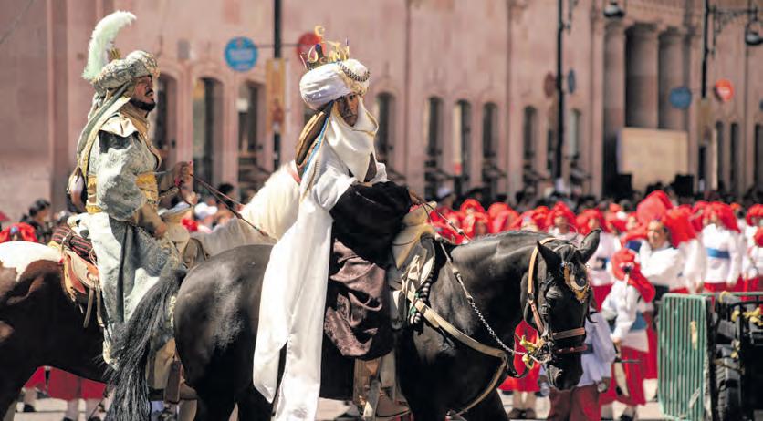 ● LAS MORISMAS de Bracho fueron reconocidas con el Récord Guinnes, al lograr ser la puesta en escena más grande del mundo, al congregar a 17 mil 601 participantes debidamente caracterizados. El recorrido que usualmente dura un par de horas, este año tardó cerca de tres, al pausar el tránsito de los devotos para el conteo y la retención de los pelotones en Plaza de Armas, lo que provocó un retraso. Alrededor de las 13:30 horas, Alfredo Arista, adjudicador oficial para el Guinnes World Record, entregó de manera oficial el reconocimiento a Zacatecas, con la escenificación más grande de todo el mundo, en el que se superó la cifra de 15 mil personas. LANDY VALLE / FOTOS: JESSE MIRELES METRÓPOLI A6