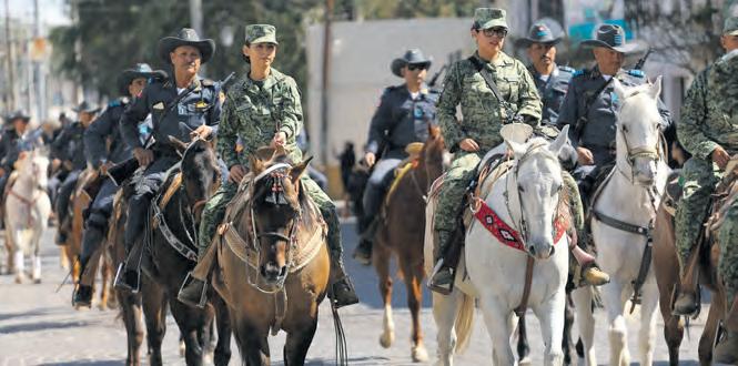 cabalgata militar, en la que el alcalde Rodrigo Ureño Bañuelos realizó el corte de soga. Chicos y grandes se dieron cita en los diferentes módulos para conocer el equipo táctico, de comunicación, antidisturbios y de emergencias médicas, así como centros de adiestramiento con los que entrenan y trabajan los elementos del Ejército Mexicano y de la Secretaría de Seguridad Pública (SSP). TEXTO Y FOTO: DAVID CASTAÑEDA NUESTRA COMUNIDAD A4