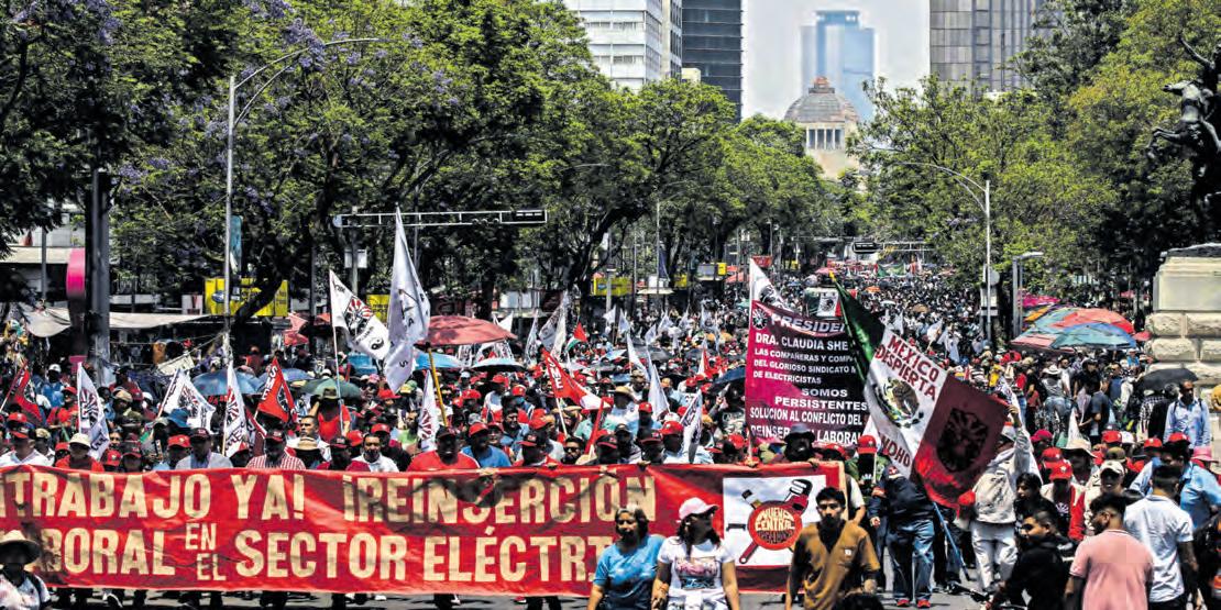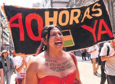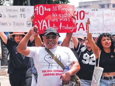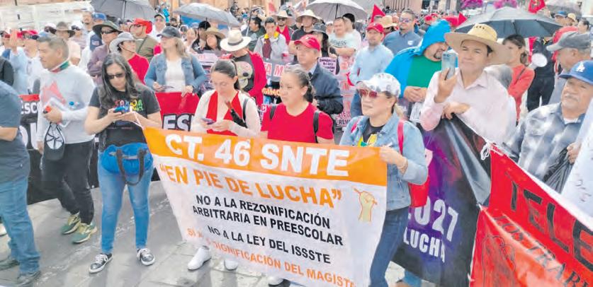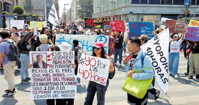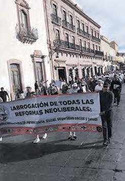 condiciones laborales dignas y reducir la jornada laboral a 40 horas por semana. Al grito de “Gobierne quien gobierne, los derechos se defienden”;“Ya cayó, ya cayó, el segundo piso de David”; “David minero, a la UAZ dale su dinero”, comenzó la marcha con contingentes que partieron desde la Alameda y la má-