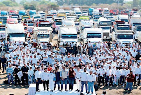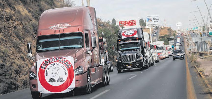 ● REPRESENTANTES de organizaciones de transportistas realizaron una caravana con 80 camiones tipo quinta rueda para exigir a mineras e industrias del estado que les otorguen trabajo y un pago justo por los fletes. Asimismo, demandaron que se transparente la investigación que realiza la minera Frisco en contra de un chofer, por supuesto robo de mineral.