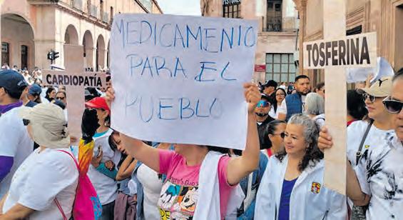 los trabajadores de la salud encaminaron sus protestas, además de la exigencia de mejoras salariales, a denunciar la carencia de medicamentos y la precariedad de servicios médicos en la entidad. “IMSS Bienestar, no eres funcional”; “Ciudadano no te enfermes, porque no hay medicamento”, advirtieron. METRÓPOLI A2