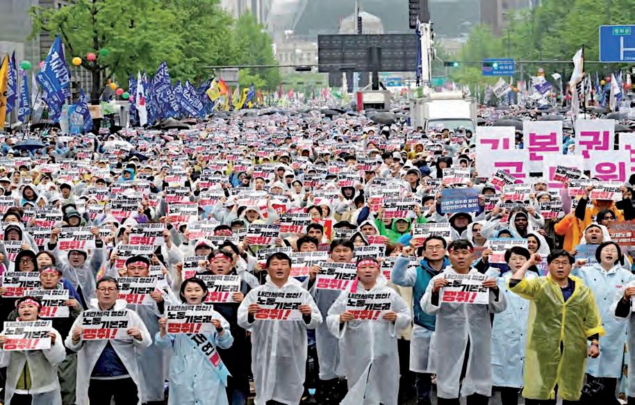 geles, miles de personas marcharon pacíficamente mostrando pancartas con mensajes como “Los migrantes hacen grande a EU”, “La migración es hermosa” y “No es momento de callar”. “Estamos llevando la lucha a los multimillonarios y a los políticos que intentan dividirnos con miedo y mentiras”, afirmó April Verrett, presidenta del Sindicato Internacional de Empleados de Servicios, que representa a dos millones de trabajadores. De manera similar, en Alemania los líderes sindicales advirtieron que el incremento de la jornada laboral y del sentimiento antimigración en ese país han afectado las protecciones laborales. Y en Suiza, miles de personas se manifestaron contra el fascismo y la guerra, en una reacción contra el auge de políticas de extrema derecha.