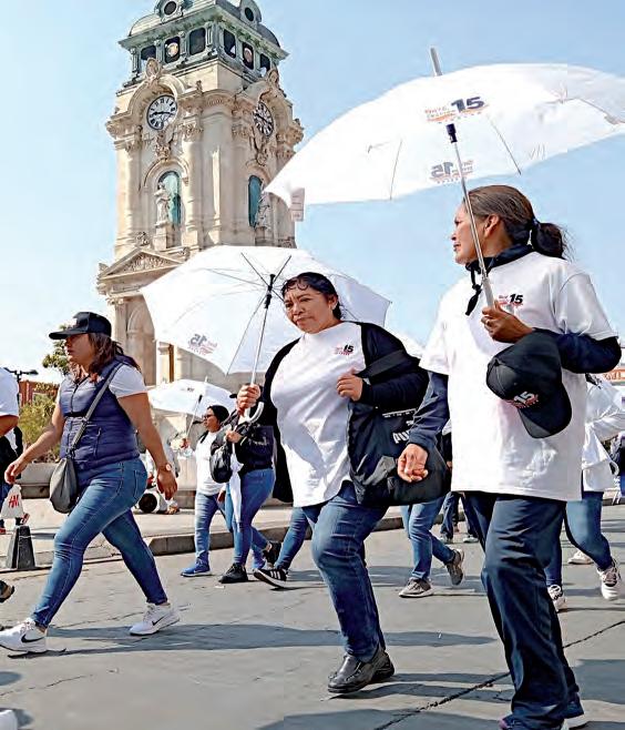“¿Dónde está el aumento salarial?” y “No somos huevones”, corearon a su paso frente a Palacio de Gobierno, que estaba cerrado.