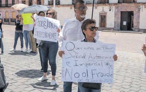 “No estamos de acuerdo con estas elecciones fraudulentas”, destacó una de las participantes, quien explicó que quienes están inconformes apoyan la división de poderes y por eso mostraron su desacuerdo con la presidenta Claudia Sheinbaum Pardo, por impulsar esta elección judicial. LANDY VALLE A6