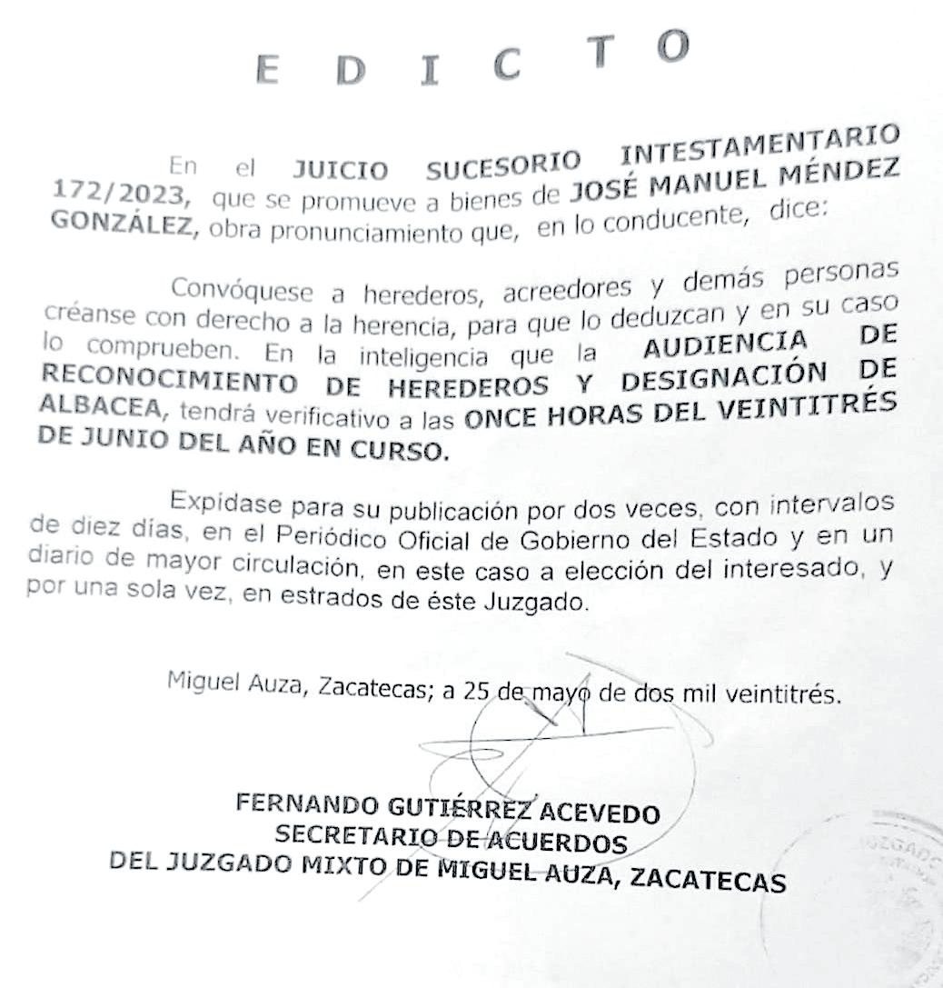 Se vende terreno ejidal en Col. La fe, Guadalupe, Zacatecas. Privada 2da Benito Juárez, lote 7, manzana S/N. Acreditado con constancia ejidal, Cuenta con servicio de luz, agua, pavimento y drenaje. SUP.1,032.80 M2. Inf. Bienes Raíces