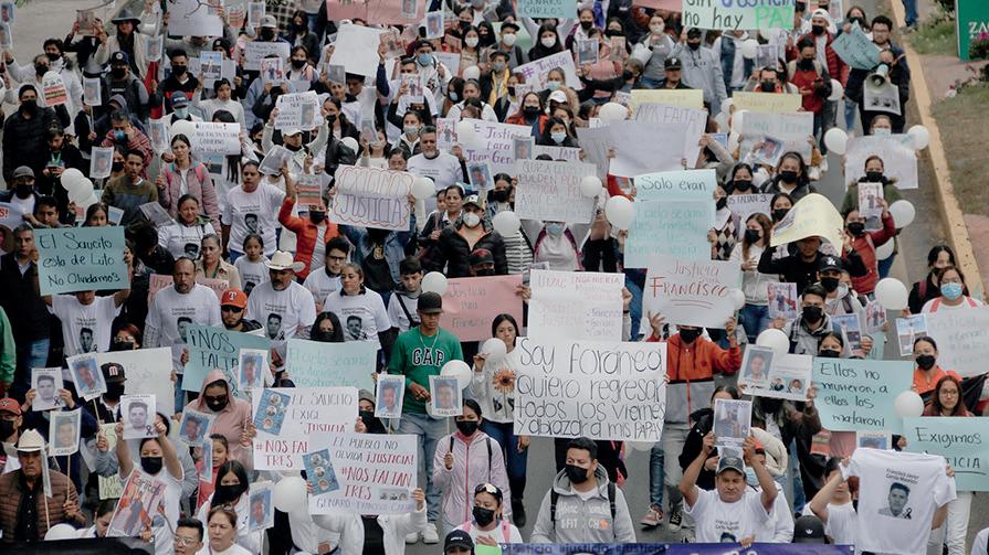 El contingente fue encabezado por los amigos de las víctimas, quienes también son habitantes de la misma comunidad y que radican en la zona conurbada para continuar con su preparación profesional.
