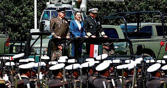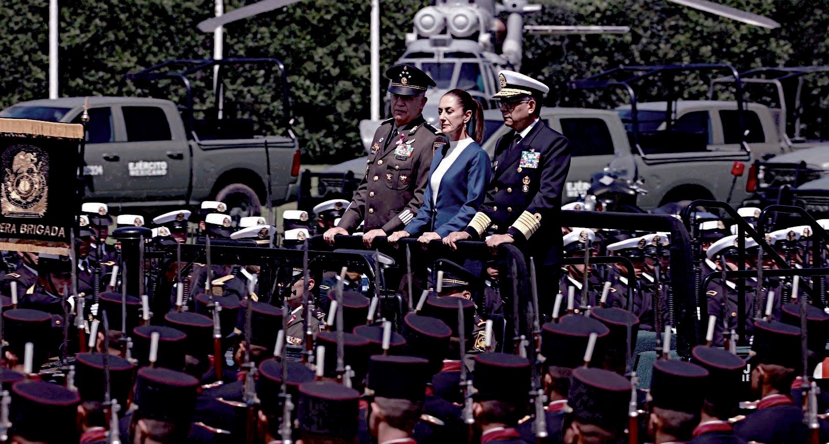 Al recibir la Salutación de las Fuerzas Armadas, quienes le reiteraron respeto, subordinación y lealtad como comandanta suprema, la presidenta Claudia Sheinbaum Pardo dijo que el paso de la Guardia Nacional (GN) a la Secretaría de la Defensa Nacional (Sedena) no es militarización. EL FINANCIERO F14