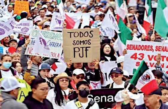 ● TRABAJADORES del Poder Judicial de la Federación (PJF), con sede en Zacatecas, acordaron con 832 votos a favor, mantener la suspensión de labores, pues argumentaron que subsiste la falta de condiciones necesarias para la prestación normal del servicio jurisdiccional. Por su parte, el diputado panista Pedro Martínez Flores señaló que para adecuar la reforma judicial a nivel estatal, es importante tomar en cuenta a los integrantes del PJ para evitar que sea “una guillotina”. ALEJANDRO WONG METRÓPOLI A5