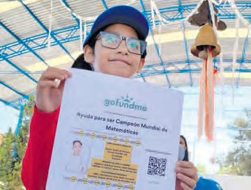 ● LEÓN RODARTE Vazquez, campeón mundial de matemáticas infantiles, se prepara para su próxima competencia en Estambul, Turquía, que se llevará a cabo en diciembre, por lo que sus padres iniciaron una campaña en línea a fin de recaudar fondos para la travesía. Lo anterior fue anunciado en un homenaje que ofreció la marca de autos Ford al pequeño, a quien se reconoció como el primer zacatecano en representar a la escuela Ford 135 de Guadalupe a nivel internacional en un desafío de tal magnitud. TEXTO Y FOTO: DAVID CASTAÑEDA CIENCIA A6