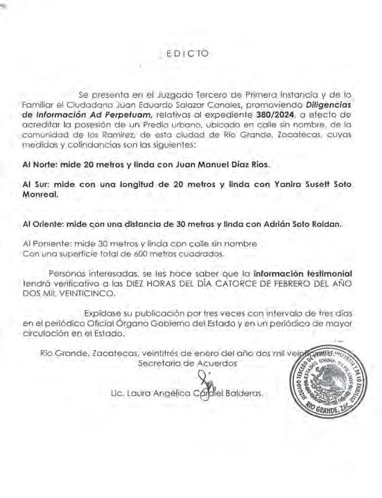 Po r gestiones del diputado federal, Alfonso Ramírez Cuéllar, ante el titular de la Secretaría de Agricultura y Desarrollo Rural (Sader), Julio Berdagué Sacristán, se liberaron más de 410 millones de pesos para cubrir adeudos con frijoleros zacatecanos registrados hasta el 29 de enero. En una primera etapa, se informó, más de 1 mil 500 productores fueron beneficiados, pero la derrama económica aumentará con el compromiso de pagar y cubrir adeudos a todos los productores de frijol en la entidad. Por su parte, Fernando Galván Martínez, líder de productores de frijol, informó que llegaron 410 millones de pesos a la entidad para cumplir con los pagos que tenía pendientes la Seguridad Alimentaria Mexicana (Segalmex), tras el acopio de la leguminosa. METRÓPOLI A5