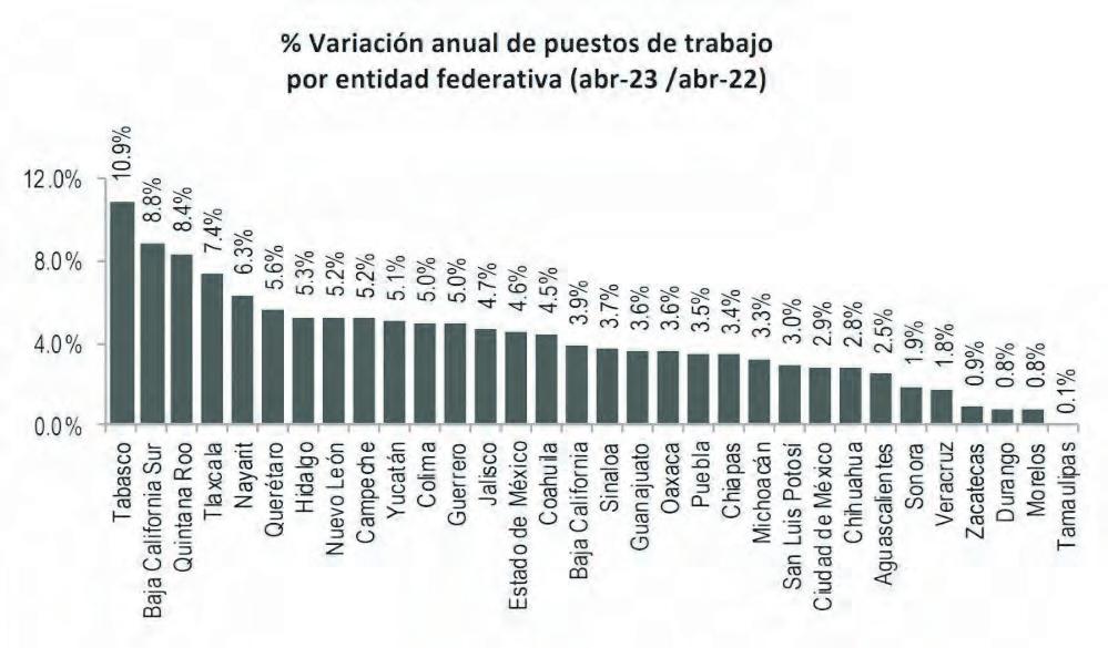 De acuerdo con los datos del IMSS, durante abril de 2023 se añadieron mil 784 plazas en comparación con el mismo mes de 2022, para alcanzar 197 mil 784 en total.