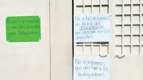 Los líderes sindicales afiliados al Instituto de Seguridad y Servicios Sociales de los Trabajadores del Estado de Zacatecas (Issstezac) se manifestaron contra las reformas en el aumento de cuotas patronales, gravar con el ISR el aguinaldo y la complementariedad que impediría que cobren una doble pensión. Durante el foro organizado por la Comisión Especial para la Atención y Seguimiento a la Crisis Financiera del Issstezac, los dirigentes del Sutsemop, SNTE, SITTEZ y Supdacobaez expusieron la necesidad de revisar de fondo estos temas para que no afecten a la base trabajadora. José Israel Chávez Leandro,