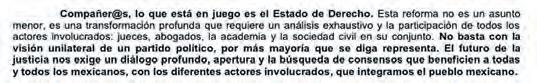 “Hay un déficit de justicia, la gente reclama un acceso a la justicia de manera pronta y expedita y eso es lo que tenemos que darles, porque votaron por esa reforma en las urnas y ahora tenemos que cumplir”, declaró.