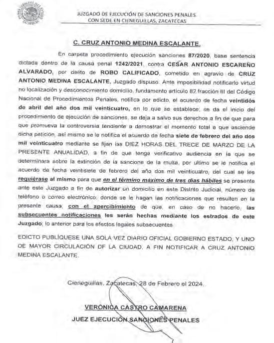 Jueves 7 de marzo de 2024 Zacatecas, Zac. Año XVI Número 5458 $15.00 FRESNILLO 94.3 FM RÍO GRANDE 98.7 FM / SOMBRERETE 92.3 FM / TLALTENANGO 90.1 FM Y 1100 AM / CONCEPCIÓN DEL ORO 101.3 FM / PINOS 102.5 FM www.ntrzacatecas.com MARCHA