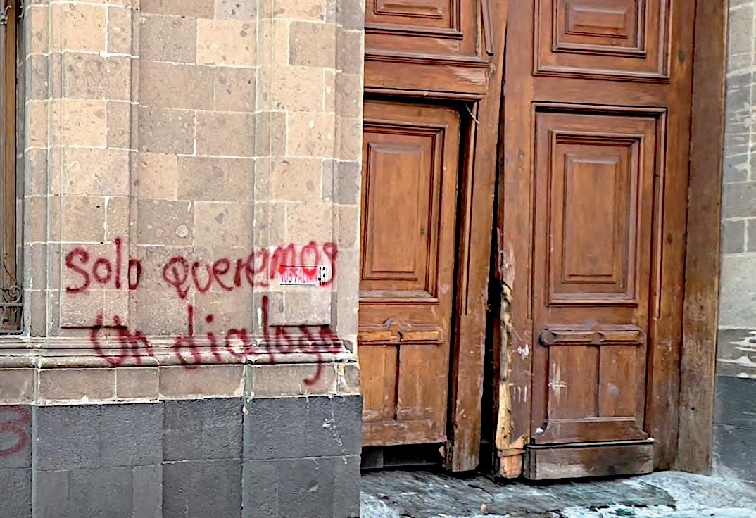 ● DOS DÍAS antes de la marcha del 8M, colocaron vallas y placas metálicas en ventanas y puertas del Palacio de Gobierno. Esto luego de que Rodrigo Reyes, secretario de Gobierno, asegurara que sería una protesta violenta, lo que negaron grupos feministas. STAFF