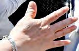 La mano derecha roja amenaza al hilo delgado no a la cortina fuerte. Lune