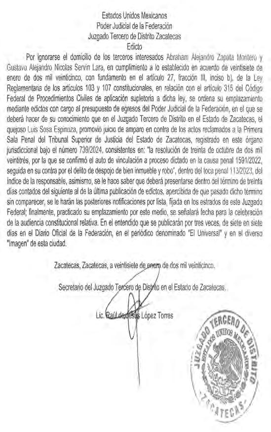 Lo que sirve ahora es para llamar al pueblo de Zacatecas, a todos los sectores sociales, productivos, a que todos defiendan el desarrollo de Zacatecas, a lograr la incorporación al desarrollo nacional” DAVID MONREAL ÁVILA, GOBERNADOR