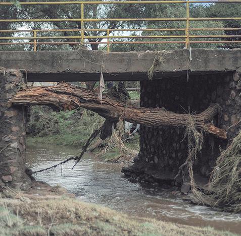 AGUA ARRASA CON MUEBLES, VEHÍCULOS Y ANIMALES DE GRANJA res domésticos y vehículos. La corriente de agua arrancó varios troncos de árbol, uno de ellos de gran tamaño quedó atorado sobre las bases del puente que une a ambas partes en que se divide la comunidad. En tanto, el agua sobrepasó 70 centímetros más el nivel del puente y deslavó la base de piedra, lo que debería revisarse posteriormente, ya que con otro caudal podría quedar en peligro de caer. Ante la desgracia, la solidaridad ciudadana fue inmediata en apoyo a las familias afectadas. De forma voluntaria, inició la recolección de ropa, zapatos, cobijas y víveres para hacer lonches a fin de ayudar a las personas que perdieron todo. Mediante un chat de WhatsApp, la ayuda comenzó a fluir, incluso de paisanos radicados en Estados Unidos a través de transferencias bancarias.