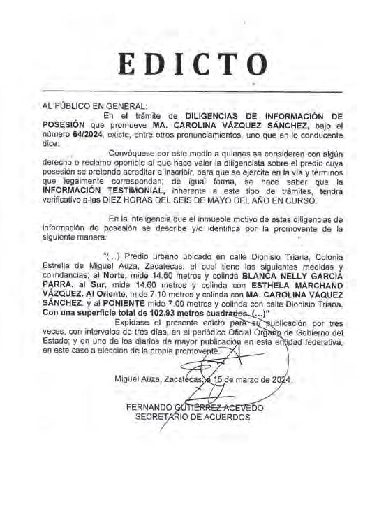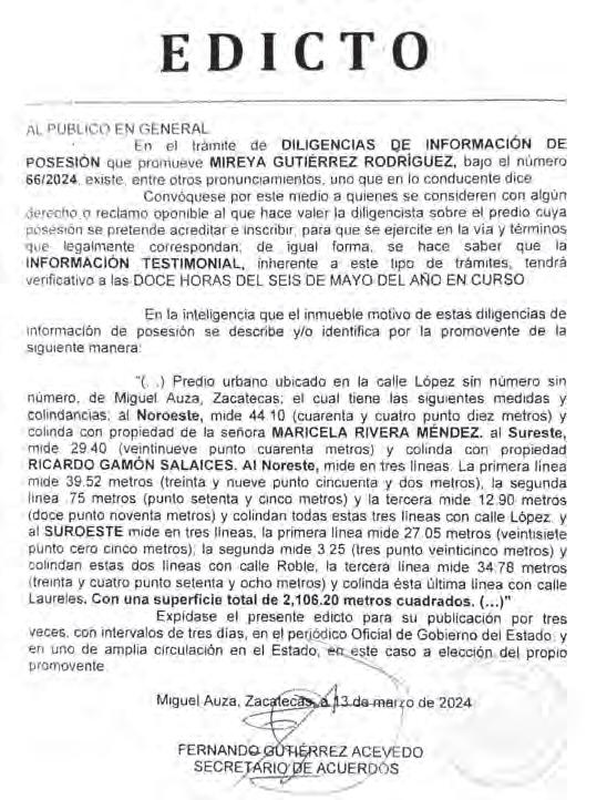 Lunes 8 de abril de 2024 Zacatecas, Zac. Año XVI Número 5486 $15.00 RÍO GRANDE 98.7 FM / SOMBRERETE 92.3 FM / TLALTENANGO 90.1 FM Y 1100 AM 101.3 FM / PINOS 102.5 FM www.ntrzacatecas.com ESCANEA EL QR PARA VER LA VERSIÓN DIGITAL