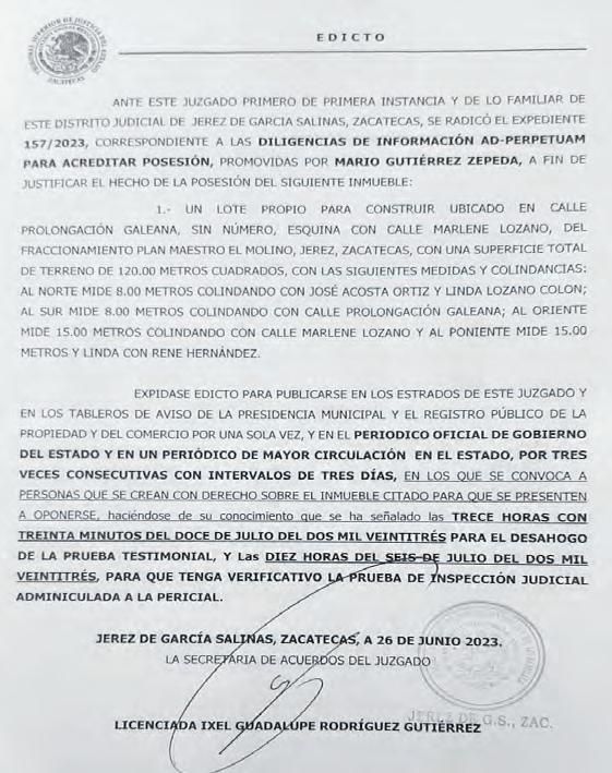 LEÓN Sábado 8 de julio de 2023 Zacatecas, Zac. Año XV Número 5220 $15.00 CONCEPCIÓN DEL ORO 101.3 FM / FRESNILLO 94.3 FM / PINOS 102.5 FM / RÍO GRANDE 98.7 FM / SOMBRERETE 92.3 FM / TLALTENANGO 90.1 FM www.ntrzacatecas twitter.com/ntrzacatecas facebook.com/ntrzacatecas ESCANEA el código QR y entra a Migrantes apoyan proyecto de Casa de Danza en Jalpa MUNICIPIOS