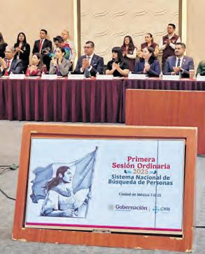 Icela Rodríguez Velázquez, secretaria de Gobernación, y Martha Lidia Pérez Gumecindo, comisionada nacional de Búsqueda de Personas. En la sesión se abordaron temas como cooperación y colaboración entre instituciones públicas, así como la cercanía, atención y empatía con familiares y colectivos de búsqueda de personas. La Comisión Nacional de Bús-