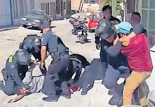 Alllegarmásagentes,cincosometieroncon golpes al muchacho en el piso, mientras dos más empujaron contra una ventana y tiraron al sueloaotrohombre,quienseacercóparaintentar calmar la situación. A este último lo libera-