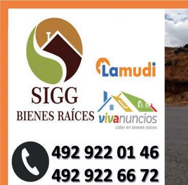 los servicios. Inf. Bienes Raíces Guillermo Sigg tel. 492 9220146 y 492 9226672. A1