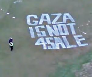 LONDRES.- Activistas propalestinos vandalizaron ayer uno de los complejos de golf en Escocia del Presidente estadounidense, Donald Trump, en respuesta a su propuesta de expulsar de la Franja de Gaza a la población palestina. Los activistas atacaron el campo y hotel Turnberry del magnate, en el suroeste de Escocia, durante la madrugada de ayer. En el lugar pintaron el mensaje “Gaza no está en venta” en letras gigantes en el césped y utilizaron pintura roja en aerosol en el exterior de la casa club.