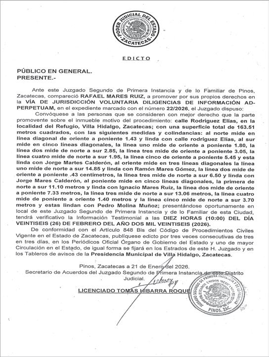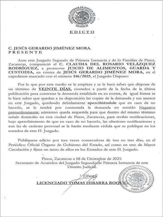 ● ESTE LUNES, Juan Diego “N”, ex director de Seguridad Pública Municipal de Tlaltenango de Sánchez Román, fue vinculado a proceso por el delito de secuestro agravado. El ex funcionario permanecerá en prisión preventiva durante las investigaciones, luego de que el 4 de febrero fue detenido por autoridades federales y estatales en un operativo en la región sur de Zacatecas.STAFF MUNICIPIOS A10