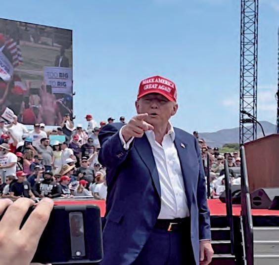 ESPAÑA ITALIA SUIZA ALEMANIA BÉLGICA FRANCIA SOL ABRASADOR. Simpatizantes de Trump acudieron ayer a un mitin del ex Presidente en Las Vegas sin importar el calor extremo, que rozó los 38 °C. El republicano dio agua y llevó servicio médico para sus seguidores. LUNES 10 / JUN. / 2024 / Tel. 555-628-7100 internacional@reforma.com @reformainter