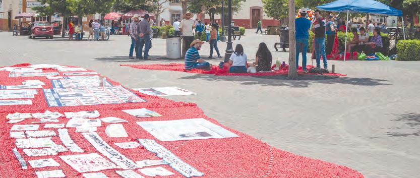 ● GUADALUPE. Por primera ocasión, el Colectivo Sangre de mi Sangre realizó actividades de tejido en este Pueblo Mágico, con el objetivo de sensibilizar a la población sobre los delitos de desaparición, feminicidio y trata de personas. Acompañados de la familia de Emilio Grijalva Villa, joven privado ilegalmente de la libertad en la colonia Victoria, de este municipio, Cristela Trejo Ortiz, integrante del colectivo, advirtió sobre el aumento de desapariciones en Guadalupe con un histórico de 383 personas desaparecidas y no localizadas. LANDY VALLE METRÓPOLI A5
