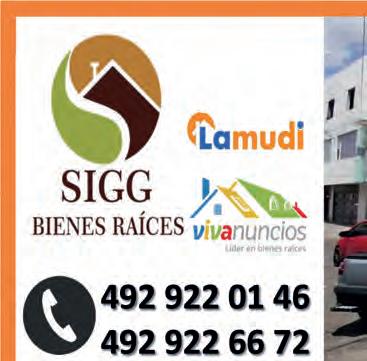 Hect. Inf. Bienes Raíces Guillermo Sigg tel. 492 9220146 y 492 9226672. L1