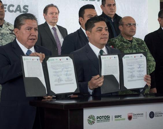 L os gobiernos de San Luis otos y acatecas fi rmaron un convenio para mejorar las condiciones de seguridad en las colindancias de ambas entidades, lo cual no representa un cambio en la estrategia de seguridad, sino un reforzamiento en los trabajos conjuntos. Tras la reunión de Coor-