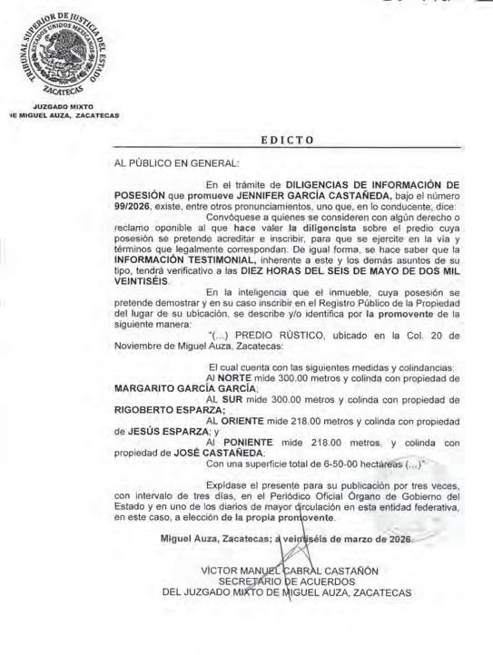 SE VENDE TERRENO EN CIENEGUITAS, GUADALUPE; ZACATECAS. propiedad privada, 1 hectárea, excelente ubicación ¡vealo y se convencera¡ cuenta con servicios. informes al teléfono: 492-126-67-10