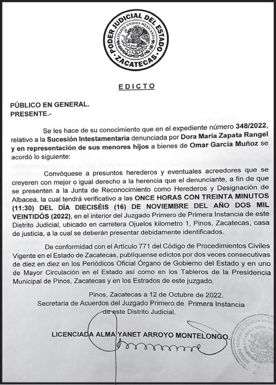 10-A www.ntrzacatecastwitter.com/ntrzacatecasfacebook.com/ntrzacatecas ESCANEA el código QR y entra a METRÓPOLI 3-A METROPOLI 2-A METRÓPOLI 2-A METROPÓLI 2-A ALERTA 8-A PASIÓN Viernes 11 de noviembre de 2022 Zacatecas, Zac. Año XIV Número 5093 $10.00 CONCEPCIÓN DEL ORO 101.3 FM / FRESNILLO 94.3 FM / PINOS 102.5 FM / RÍO GRANDE 98.7 FM / SOMBRERETE 92.3 FM / TLALTENANGO 90.1 FM