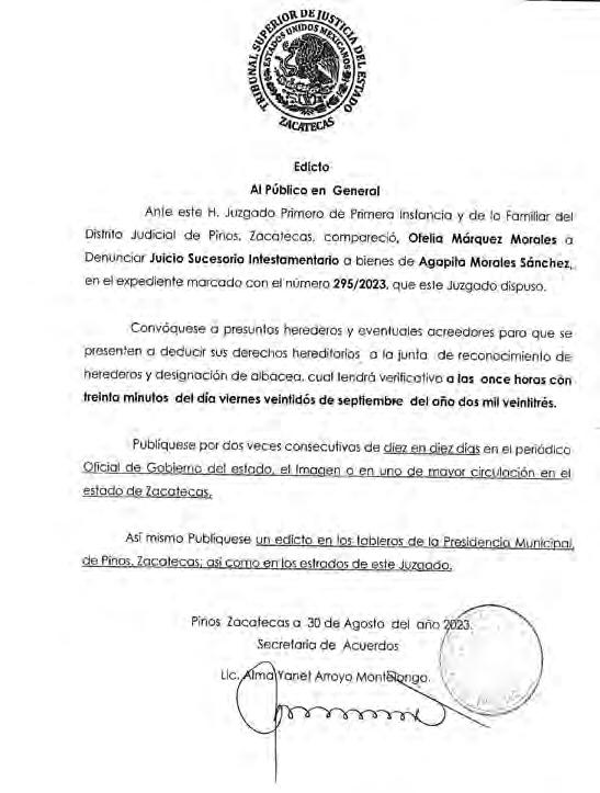 Martes 12 de septiembre de 2023 Zacatecas, Zac. Año XVI Número 5286 $15.00 FRESNILLO 94.3 FM RÍO GRANDE 98.7 FM / SOMBRERETE 92.3 FM / TLALTENANGO 90.1 FM Y 1100 AM / CONCEPCIÓN DEL ORO 101.3 FM / PINOS 102.5 FM www.ntrzacatecas.com PREVENCIÓN ■ Inicia CDHEZ Semana de Salud Mental e Inclusión A5 LEGISLATURA ■ Dan Jucopo a Morena y Finanzas al PRI A5 MAZAPIL ■ Ayudan con despensas por huelga en Peñasquito A7 JEREZ ■ Reconocen al académico Axel Didriksson A7 ADEUDOS ■ Retrasan tres quincenas a trabajadores en ISSSTE A3 ESCANEA EL QR PARA VER LA VERSIÓN DIGITAL