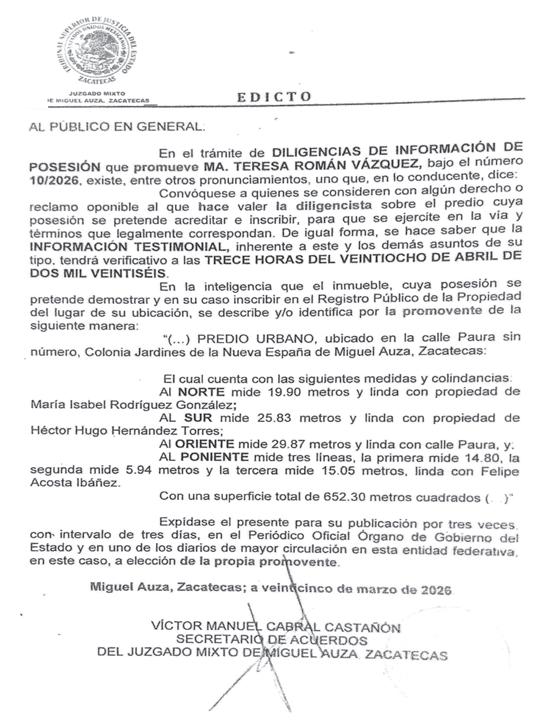 El orito Zacatecas frente a la iglesia de picones zona de Gran crecimiento No dejes pasar esta oportunidad terreno de 980 m²
