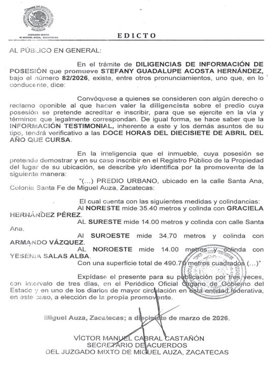SE VENDE TERRENO EN CIENEGUITAS, GUADALUPE; ZACATECAS. propiedad privada, 1 hectárea, excelente ubicación ¡vealo y se convencera¡ cuenta con servicios. informes al teléfono: 492-126-67-10
