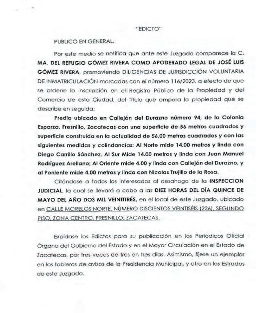 ta Col. Buenos Aires, Zacatecas, Zac. Calzada CNC #108 (a un c ostado de Aceros de Zacatecas). Sup. 200