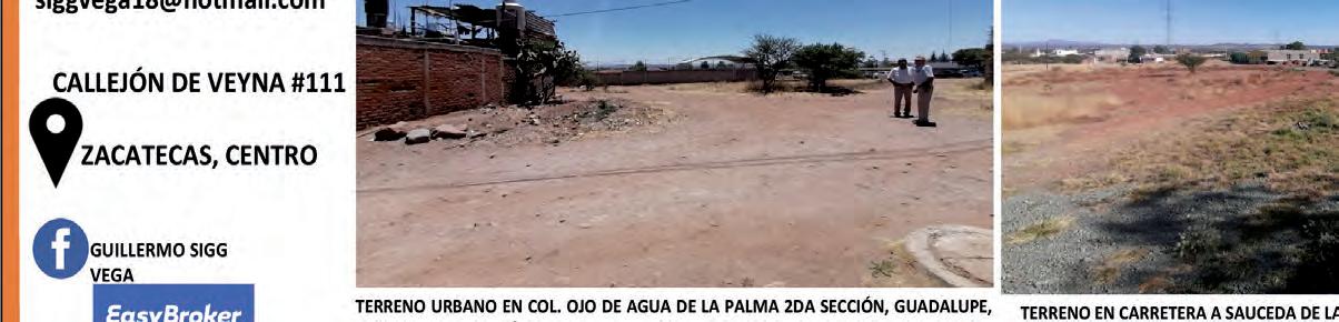 M2. Inf. Bienes Raíces Guillermo Sigg tel. 492 9220146 y 492 9226672.