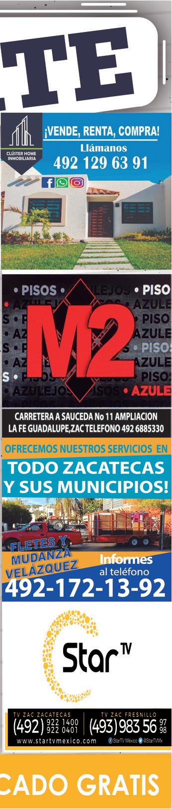 CONCEPCIÓN DEL ORO 101.3 FM / FRESNILLO 94.3 FM / PINOS 102.5 FM / RÍO GRANDE 98.7 FM / SOMBRERETE 92.3 FM / TLALTENANGO 90.1 FM Martes 13 de diciembre de 2022 Zacatecas, Zac. Año XIV Número 5123 $10.00 METRÓPOLI 2-A GONZÁLEZ, A JUSTICIA ADMINISTRATIVA Y DIMAS RINDE PROTESTA EN CDHEZ