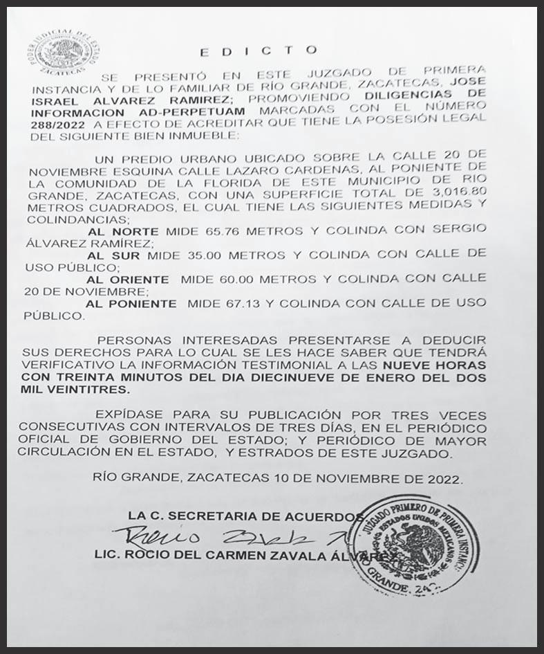 Sombrerete, Zacatecas. Sup. 18-68-91.52 Hect. L1