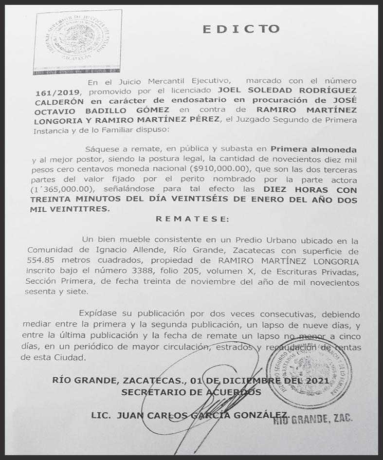 Inf. Bienes Raíces Guillermo Sigg tel. 492 9220146 y 492 9226672. L2