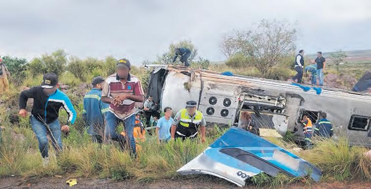 ●SOMBRERETE. La volcadura de un autobús de la compañía Ómnibus resultó en la muerte de una niña de cuatro años y al menos 11 pasajeros lesionados. Las autoridades reportaron que el camión salió de Aguascalientes con rumbo a la capital de Durango. El accidente ocurrió en la carretera federal 45, a la altura de la comunidad San Antonio de Belén. LIBRADO TECPAN ALERTA A8