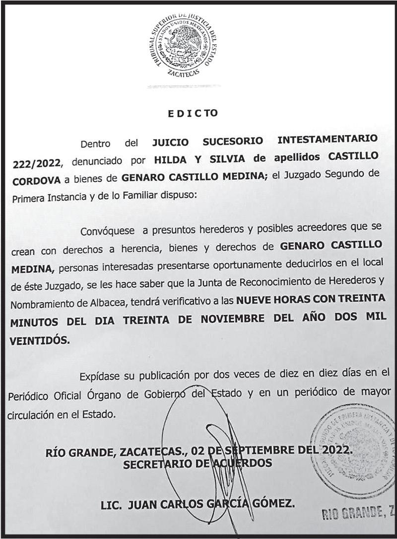 Raíces Guillermo Sigg tel. 492 9220146 y 492 9226672. J1