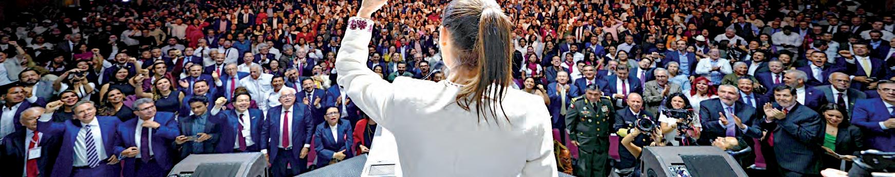 Por la tarde, frente a un Teatro Metropólitan lleno de morenistas dijo que los empresarios “no tienen de qué preocuparse” por la reforma judicial y ofreció fortalecer el Estado de Derecho. Anticipó un acuerdo
