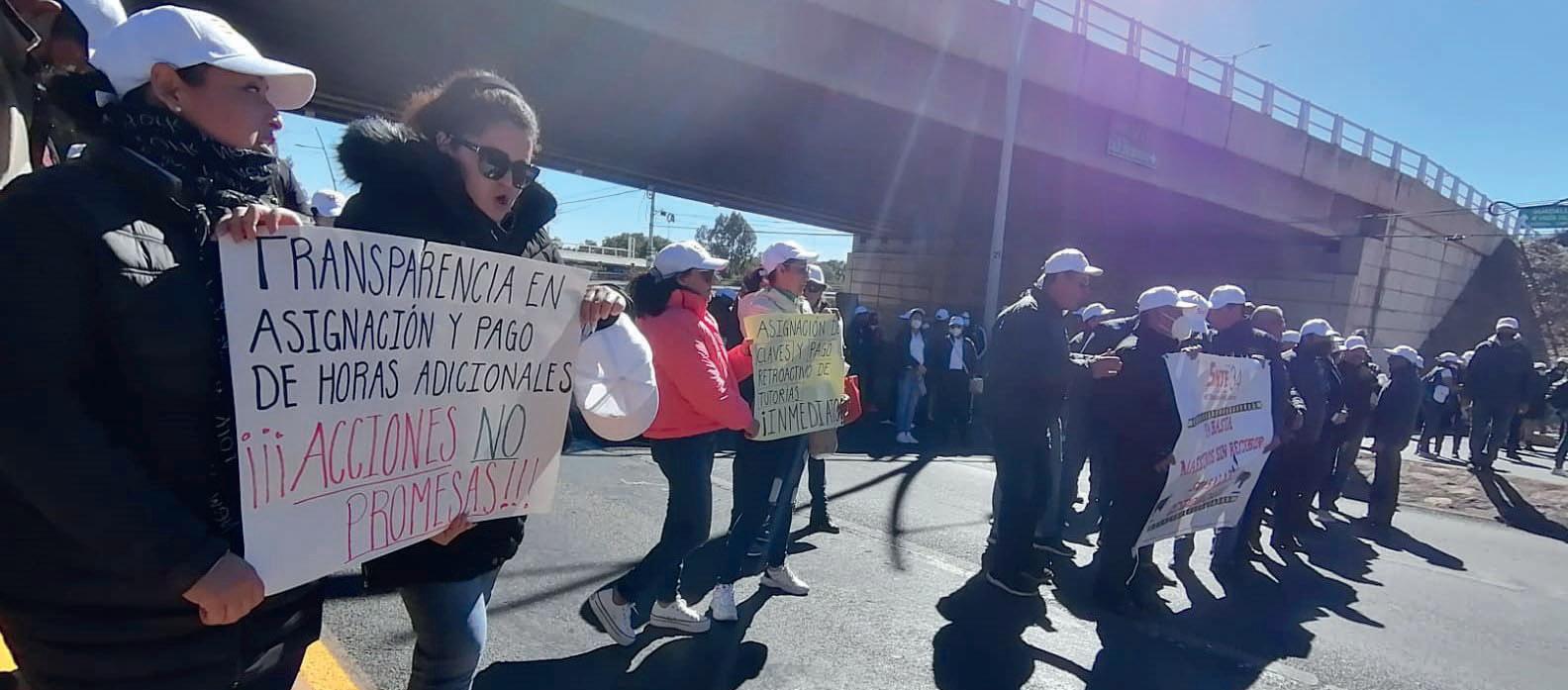 Docentes toman el bulevar por adeudos